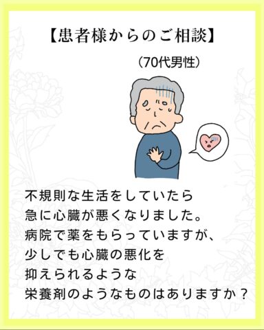 病院で薬をもらっていますが、少しでも心臓の悪化を抑えられるような栄養剤のようなものはありますか?