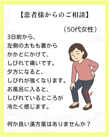 3日前から、左側の太もも裏からかかとにかけて、しびれて痛いです。